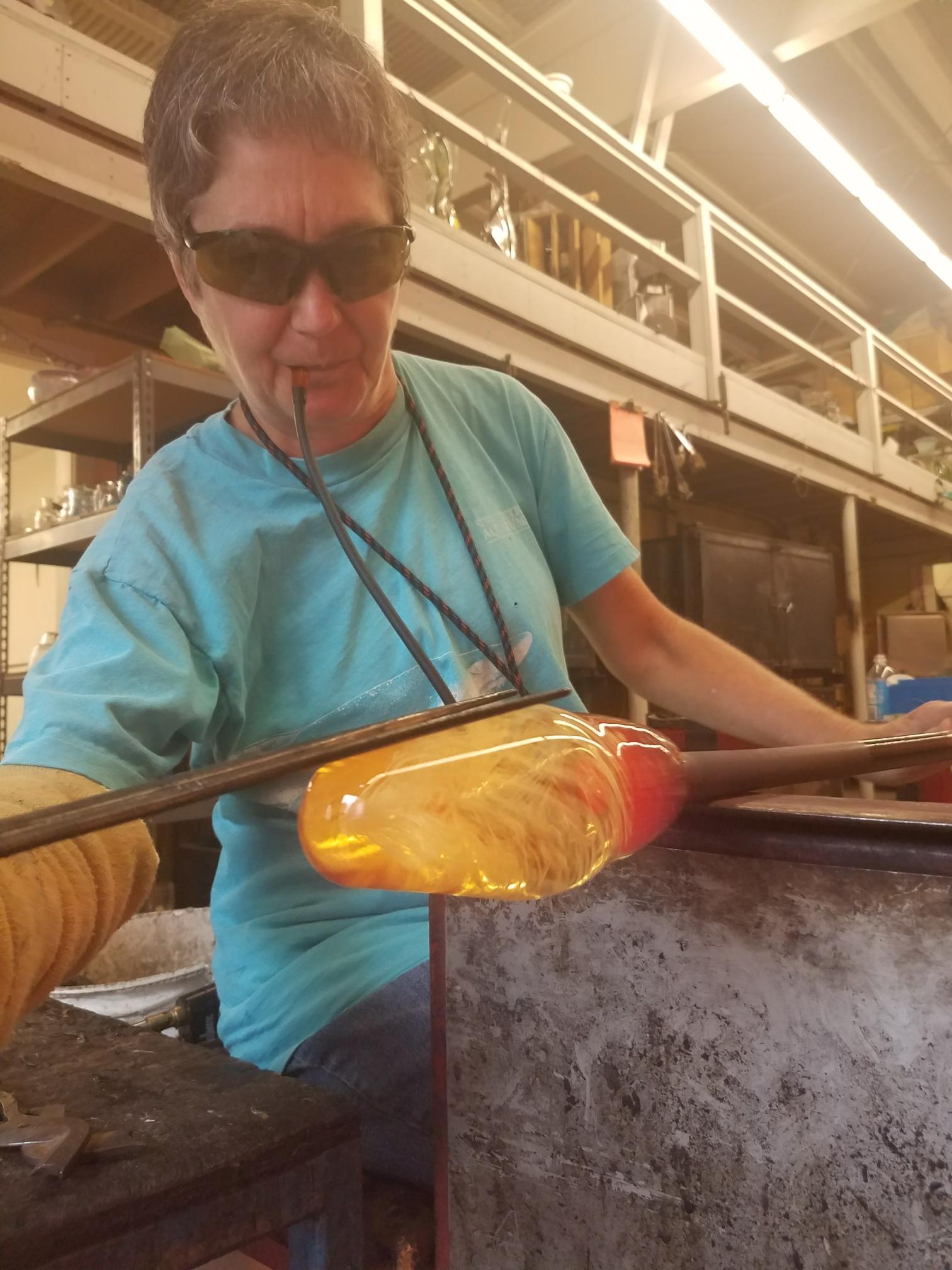 Ellen Garvey signed up for a glassblowing class at Salem State University as a way to escape from her stressful and demanding career in high tech. It wasn’t long before she was hooked. It’ s a very hot, dirty, expensive, and possibly dangerous environment that for some reason captivates her and keeps her coming back for more!