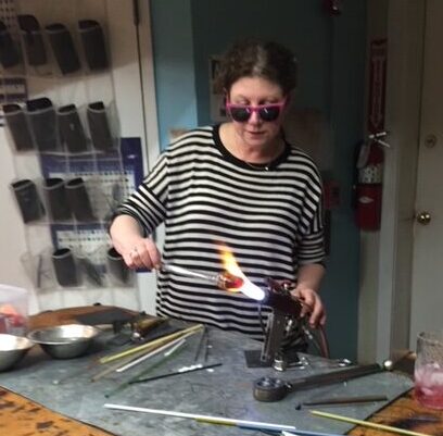 Toby has been teaching flameworking for 10 years. She enjoys teaching beginners as well as experienced glass students. She will give you a solid foundation in glass techniques. Toby has had her work on display Flatrocks gallery, Worcester Center for Crafts and at Diablo Glass School.