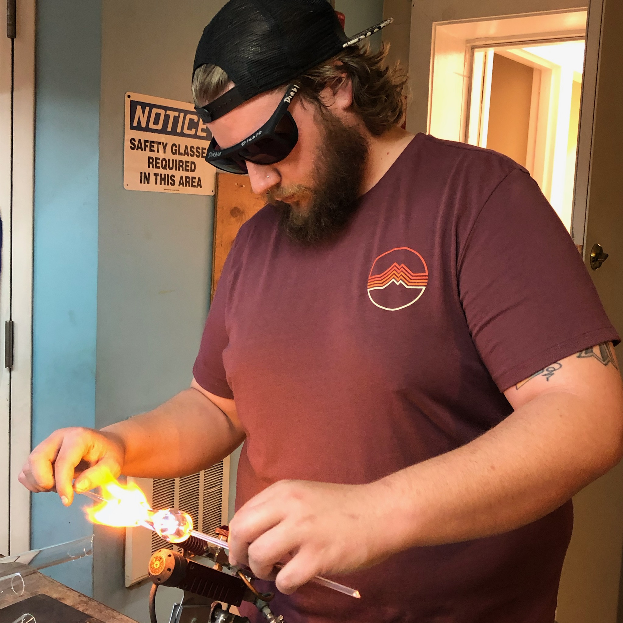 Currently, Sarah creates work for her company, Charged Glassworks, which specializes in handmade glass art, home decor, and jewelry. Charged Glassworks can be viewed through www.ChargedGlassworks.com and has been featured in BuzzFeed, Unilad, Boston Voyager, Boston Globe, American Craft Magazine, Harper’s Bazaar, West Elm, the Craft Industry Alliance, and The Flow magazine. In the Massachusetts area, Charged Glassworks has been shown at the Museum of Fine Arts Boston, the Institute of Contemporary Art, the DeCordova Sculpture Park, and the Attleboro Museum of Art. Sarah has been a speaker for the Sustainable Business Network of Massachusetts and has developed opportunities for other small businesses in MA through her partnership programs. All of the glass work for Charged Glassworks has been created here at Diablo Glass School.