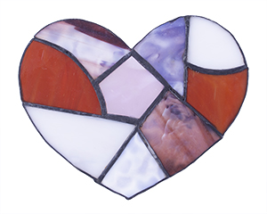 Stained glass refers to both colored glass and the technique of combining the glass into decorative windows and objects. Pieces of stained glass are cut and ground to fit closely together to form a design. The individual pieces of glass are assembled using the Tiffany Copper Foil technique. This involves lining the edges of the glass pieces with copper foil, then soldering them together using non-lead solder. Two-dimensional assembled pieces are sometimes mounted in a frame. Three-dimensional pieces can also be created.